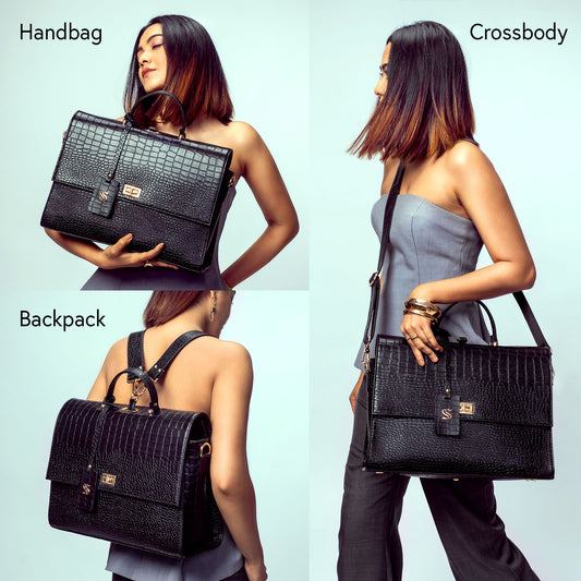 The Compact Convertible Work Bag for 14" laptops: Charcoal Chic (3 in 1 - Backpack, Crossbody/Tote & Handbag)