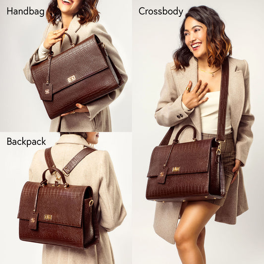 The Compact Convertible Work Bag for 14" laptops: Mahogany Mystique (3 in 1 - Backpack, Crossbody/Tote & Handbag)
