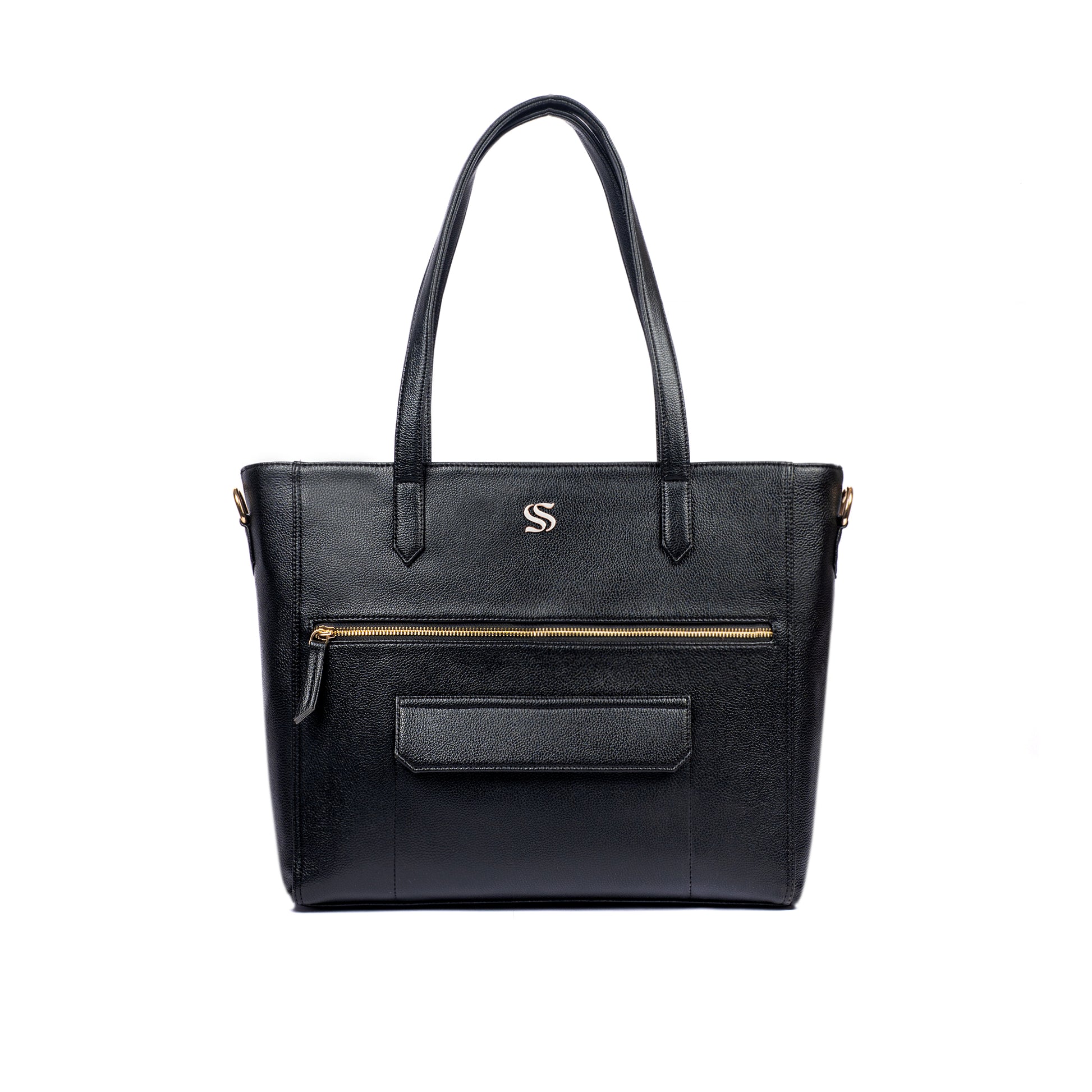 An everyday tote, elevated. With space for a 16” laptop, luggage sleeve, multiple inner and outer pockets for effortless organisation, and a detachable strap for versatility, this piece is designed to move with you. The sleek boat silhouette and elegant finish make it a timeless companion for work, travel, and everything in between.