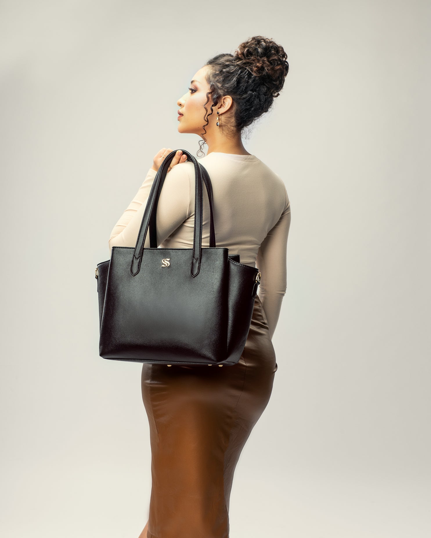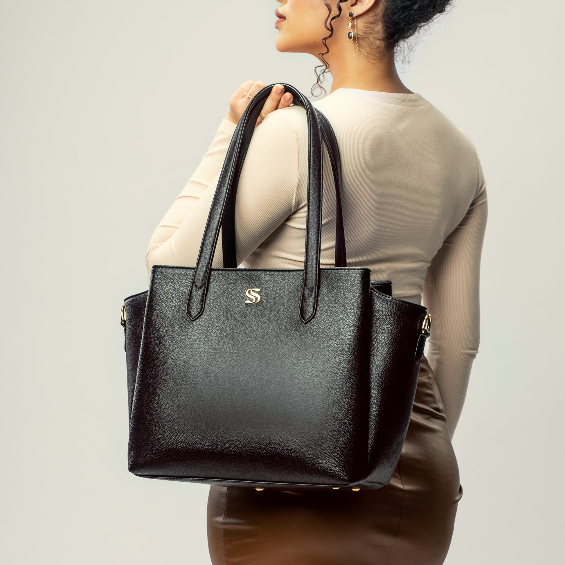 Designed for women who appreciate structure with softness, this tote features three generous compartments for seamless organisation and fits a 16” laptop with ease. Finished with multiple pockets and a detachable, adjustable strap, it balances functionality with a polished, minimalist silhouette - perfect for workdays and beyond.