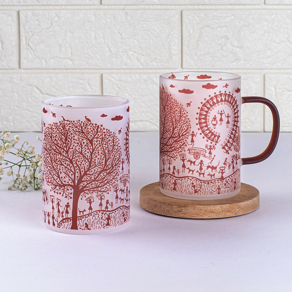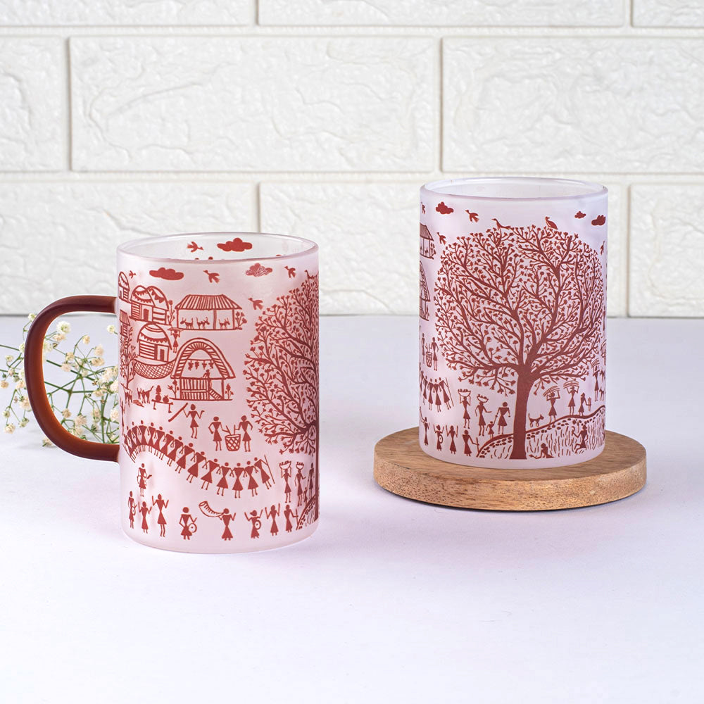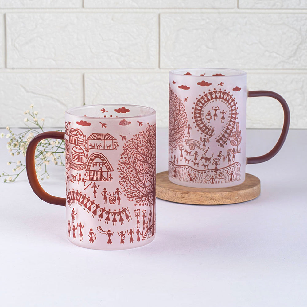 The Ethnic Warli Art frosted mugs are inspired by the Warli art created by an indigenous tribe of western India. These gorgeous mugs are ethnic yet classy and make a perfect addition to your drinkware collection. Made with high quality borosilicate glass, these mugs ooze with elegance and also make the perfect gift for your loved ones!