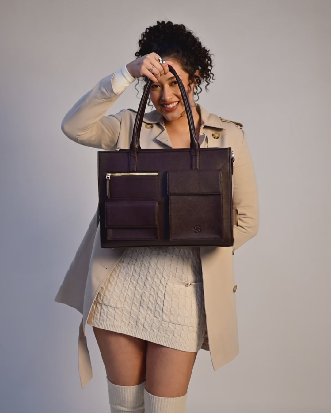 Chic on the outside. Intelligent on the inside. With space for a 16” laptop, a detachable adjustable strap, luggage sleeve, bottle holder, and thoughtfully placed pockets, this tote is designed for seamless everyday carry. Finished in a sleek, refined silhouette, it is the perfect balance of elegance and practicality.