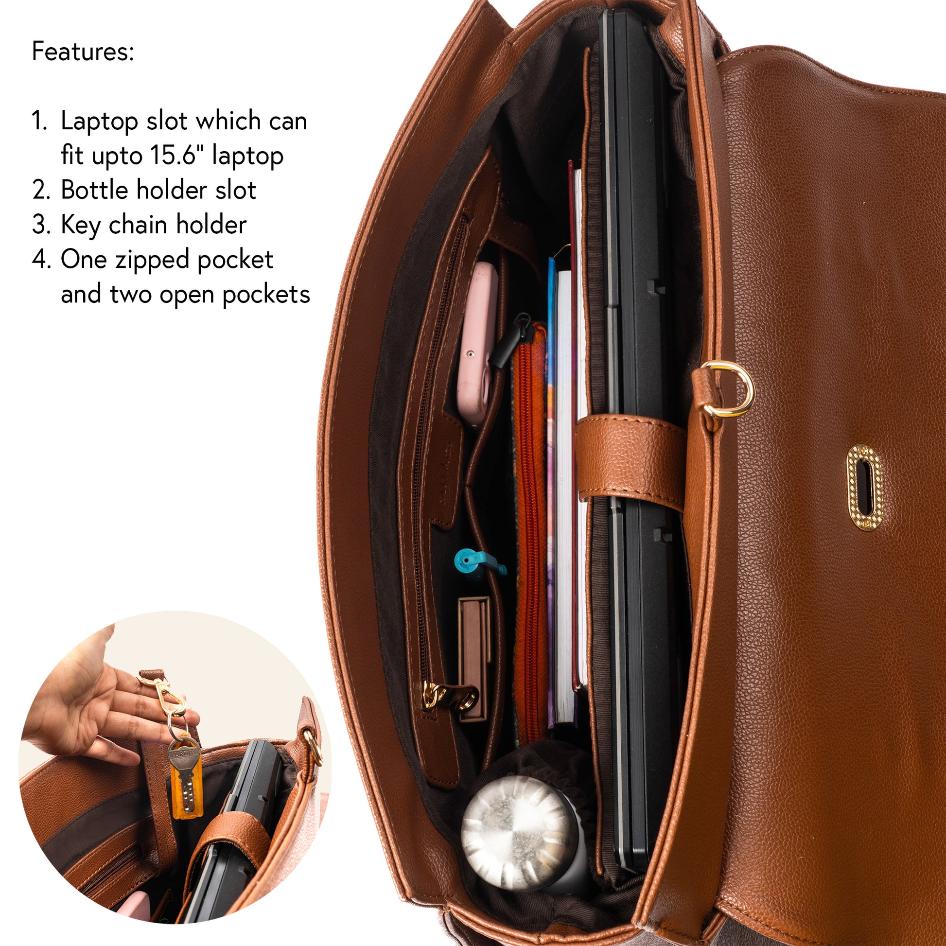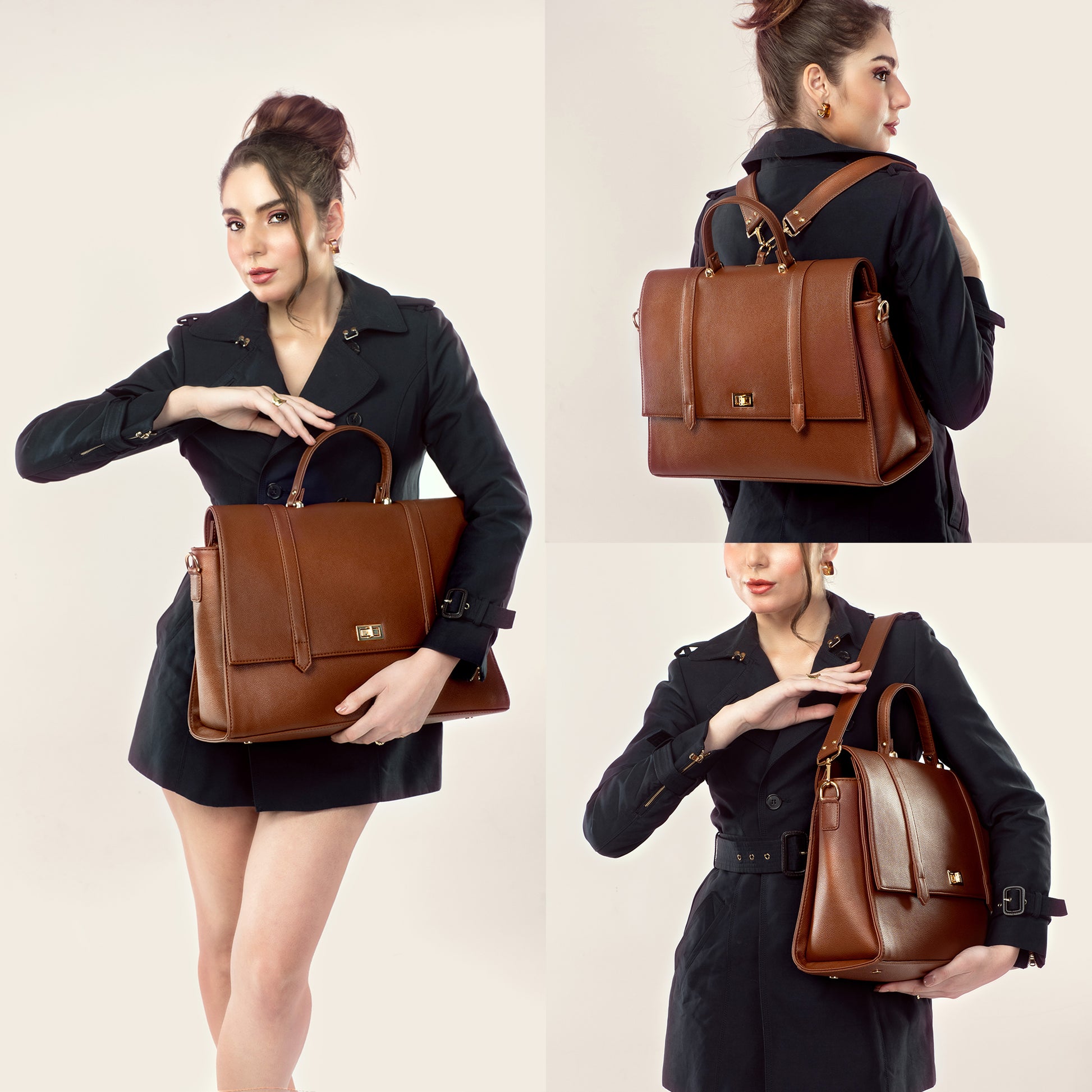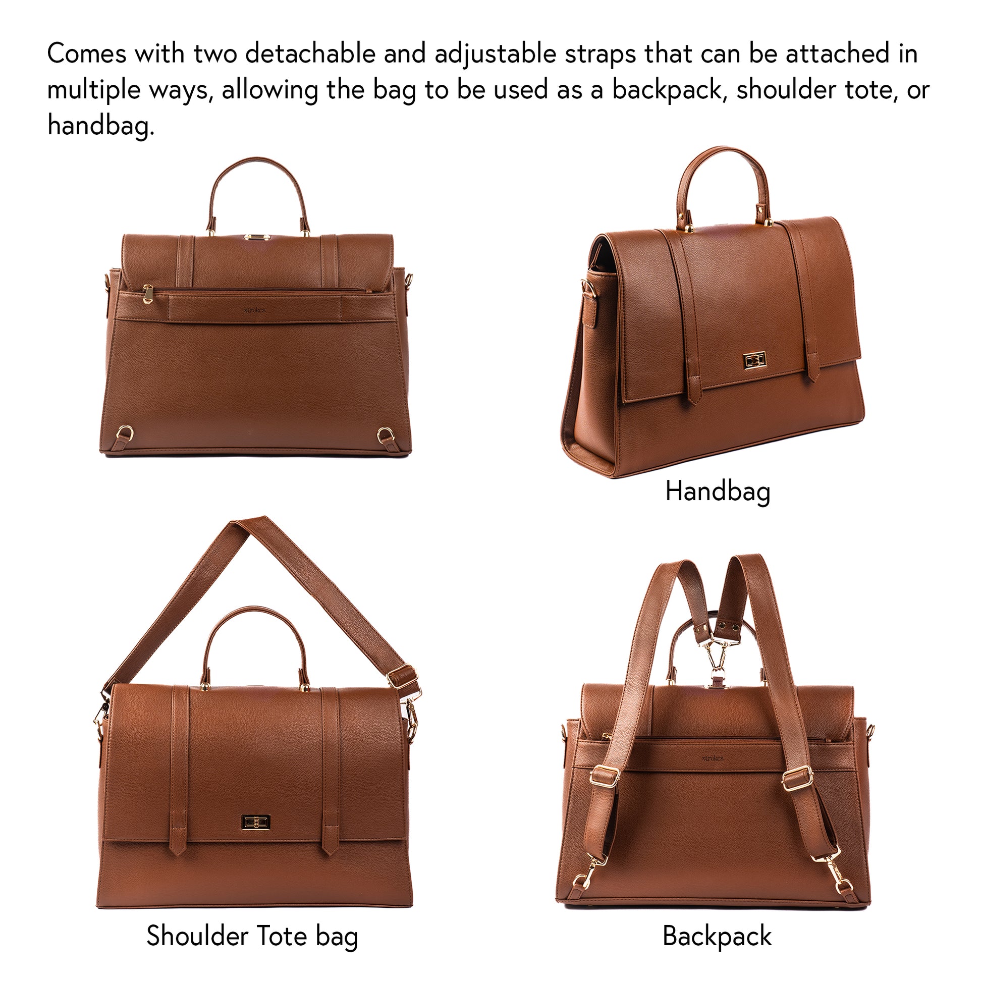 The Convertible Work Bag: Handbag, Backpack & Shoulder Tote - Mocha Elegance